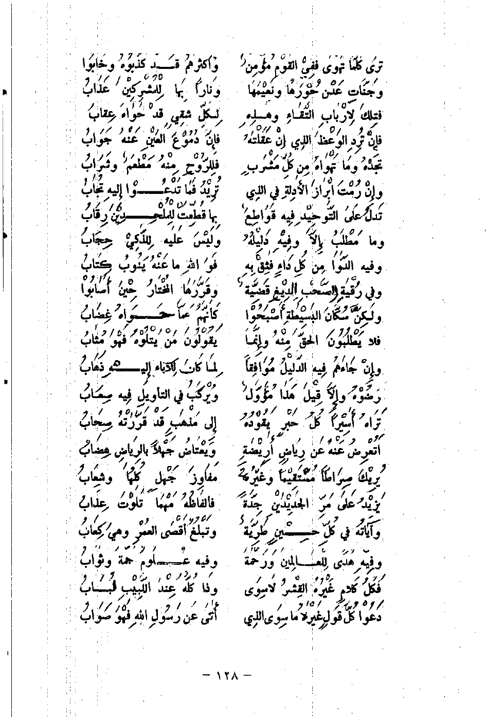 وفِيهِ هُدًى لِلْعَالِمينَ وَرَحْمَةٌ ... وفيه عُلَومٌ جَمّةَ وثوابُ