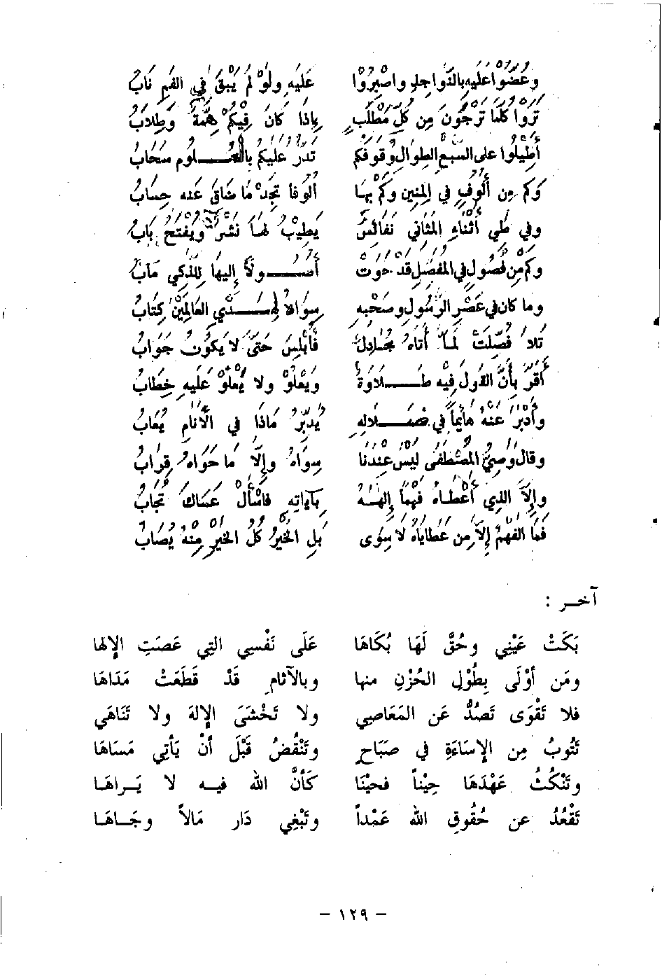 بَكَتْ عَينِي وحُقَّ لَهَا بُكَاهَا ... عَلَى نَفْسِي التِي عَصَتِ الإِلها