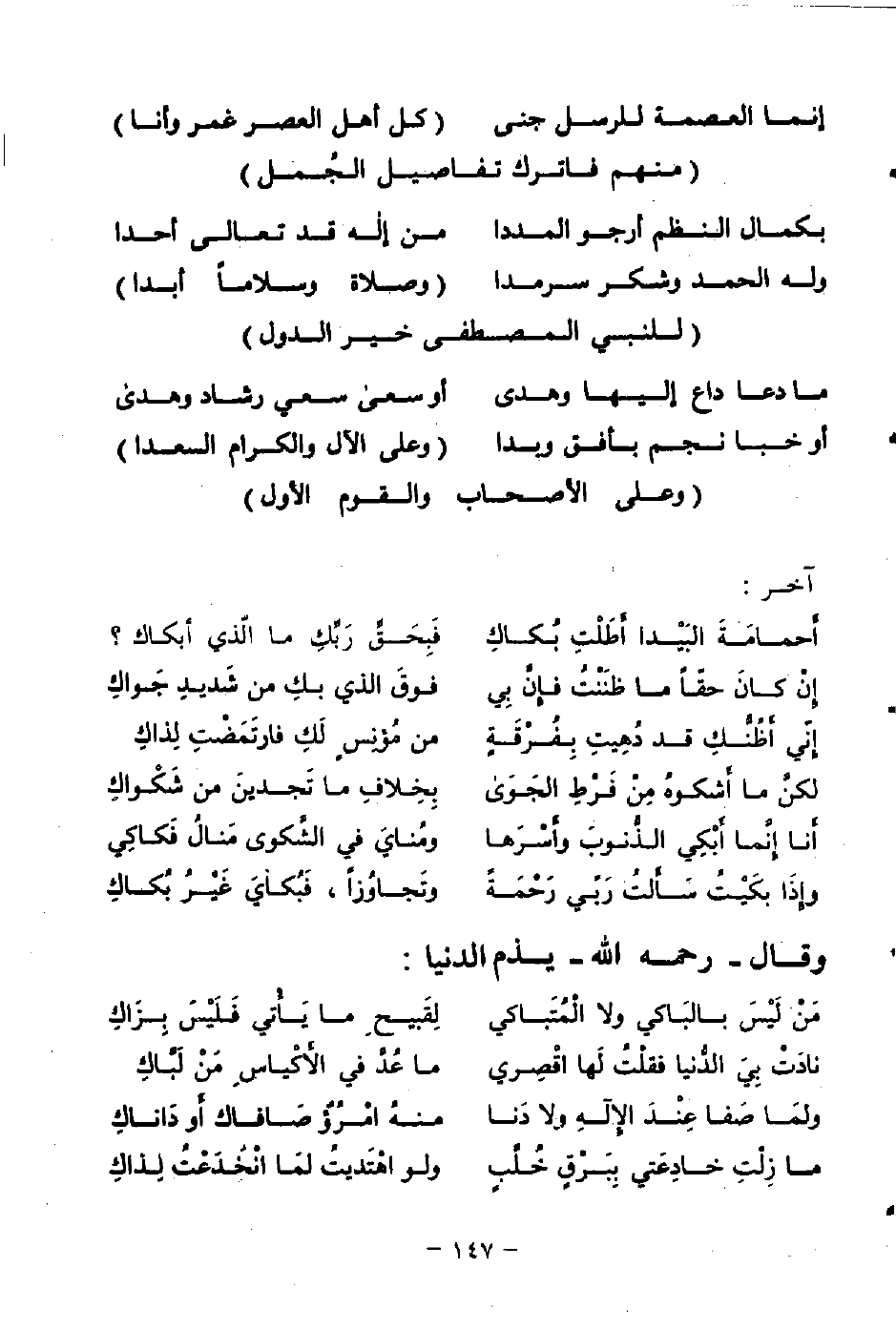 وله الحمد وشكر سرمدا ... (وصلاة وسلامًا أبدا)