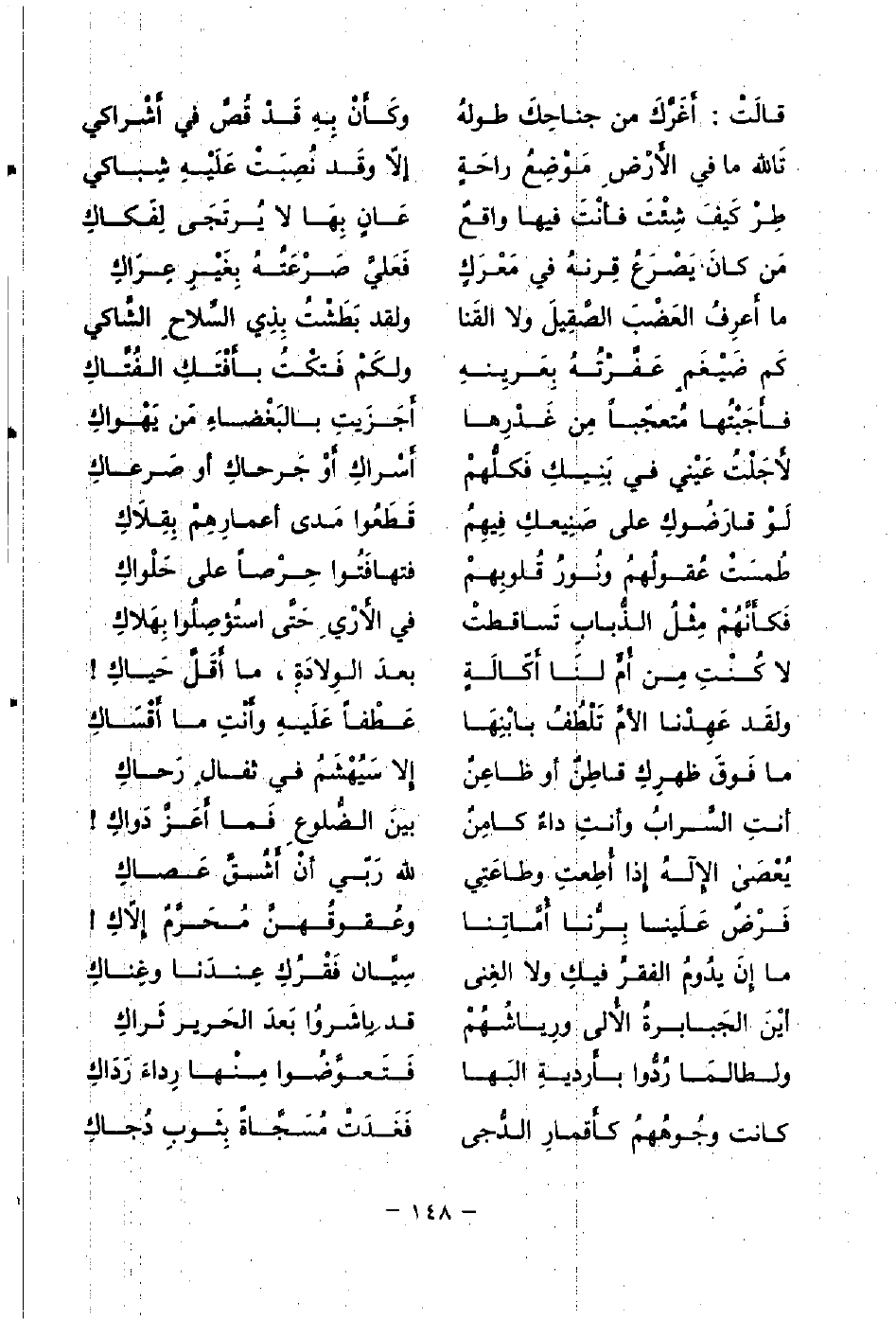 يُعْصَى الإِلهُ إِذا أُطِعتِ وطاعَتِي ... لله رَبّي أنْ أَشُقَّ عَصاكِ