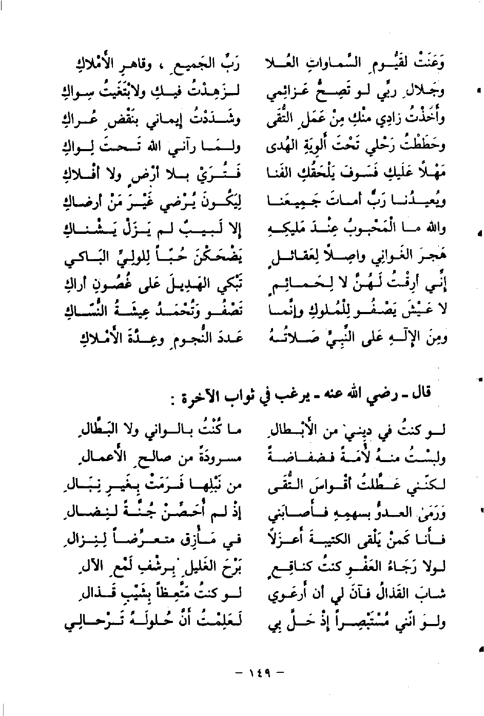 قال - رضي الله عنه - يرغب في ثواب الآخرة: