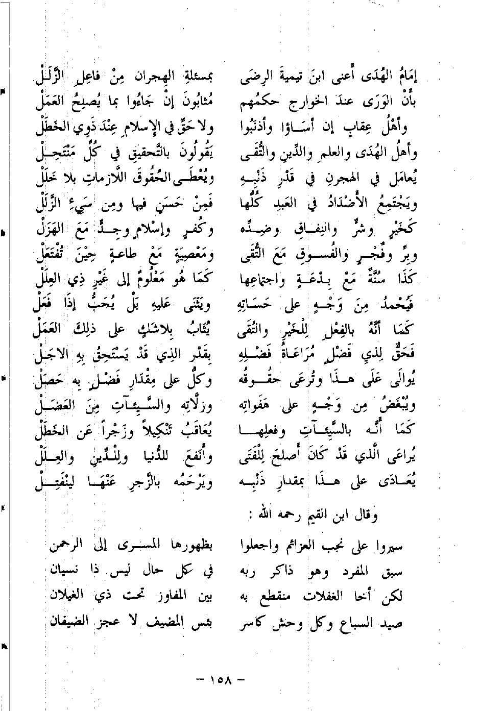إِمَامُ الهُدَى أَعنى ابنَ تيميةَ الرِضَا ... بمسألةِ الِهجران مِنْ فاعِلِ الزَّلَلْ