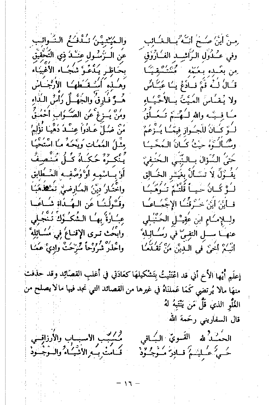 اتْبَعْ أَخِي في الدِين مَنْ تَقَدَّمَا ... واحْذَرْ شُرُوحًا شُرِحَتْ وادِي عَمَا