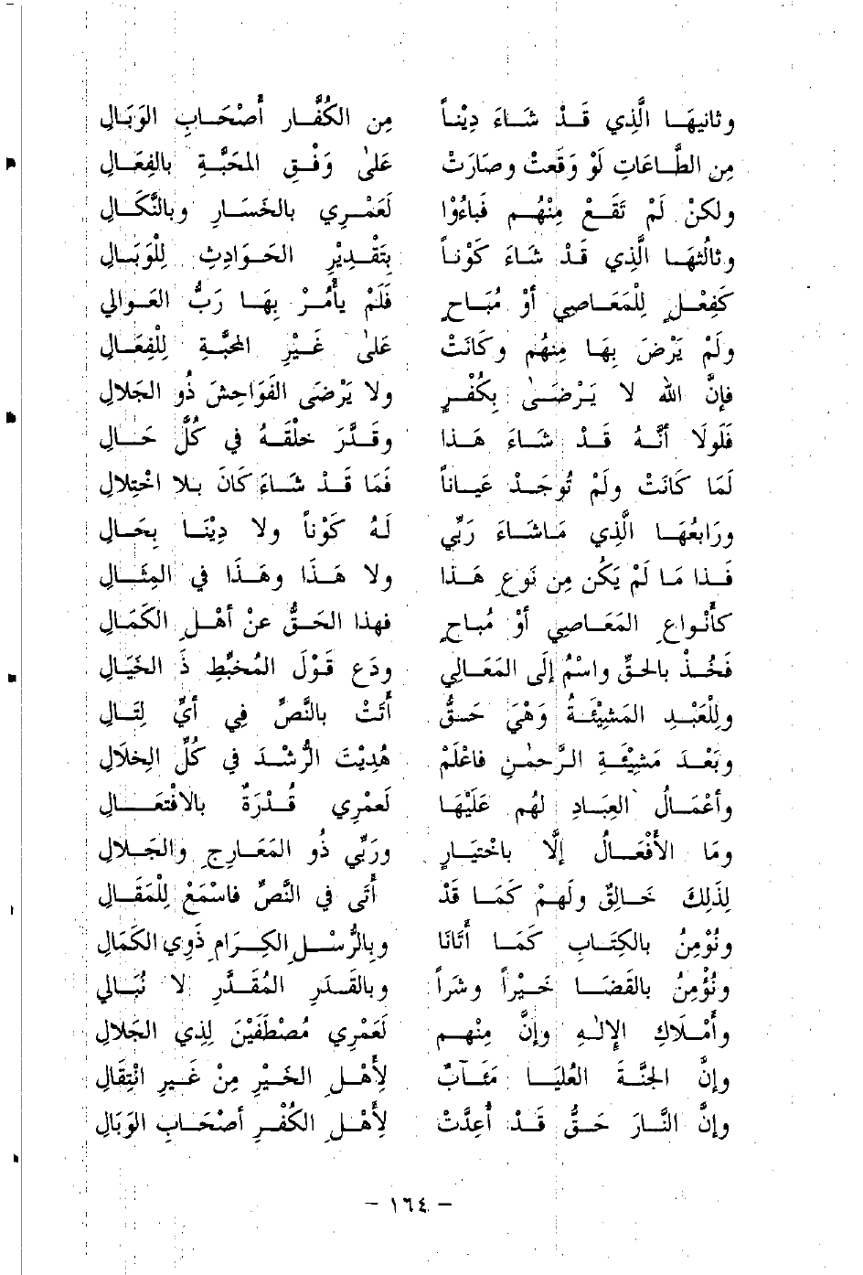 ولِلْعَبْدِ المَشِيئَةُ وَهْيَ حَقُّ ... أَتَتْ بالنَّصِّ فِي أيٍ لِتَالِ