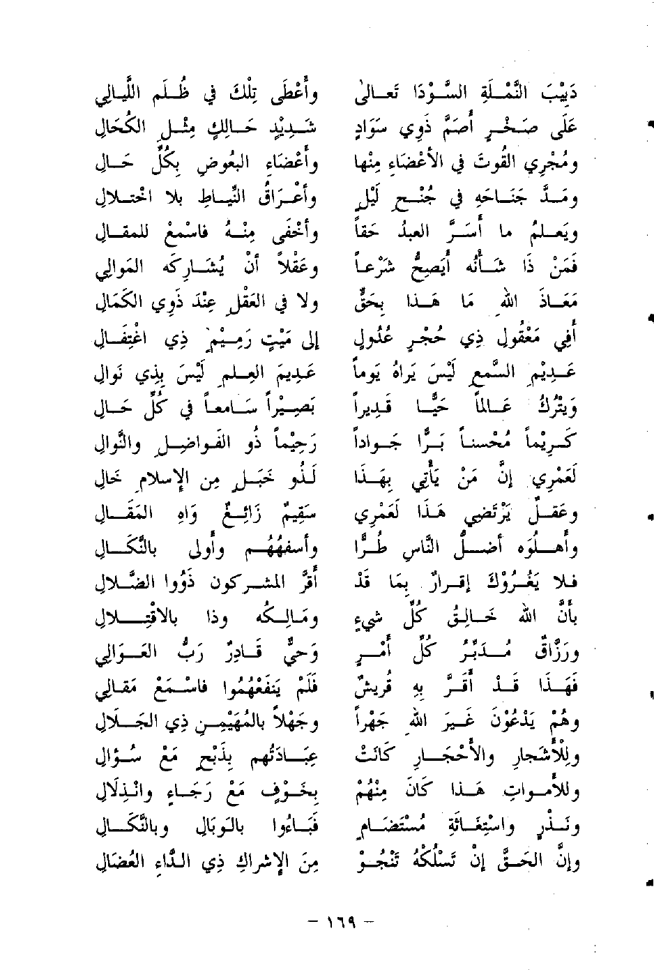 وَيتْرُكُ عَالمًا حَيًّا قَدِيرًا ... بَصِيرًا سَامعًا في كُلِّ حَالِ