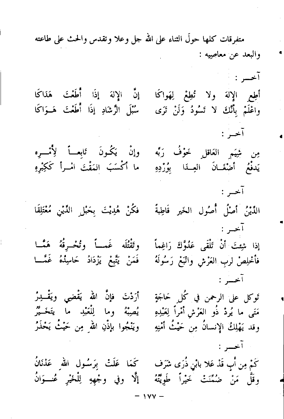 متفرقات كلها حولَ الثناء على الله جلَّ وعلا وتقدس، والحث على طاعته والبعد عن معاصِيه: