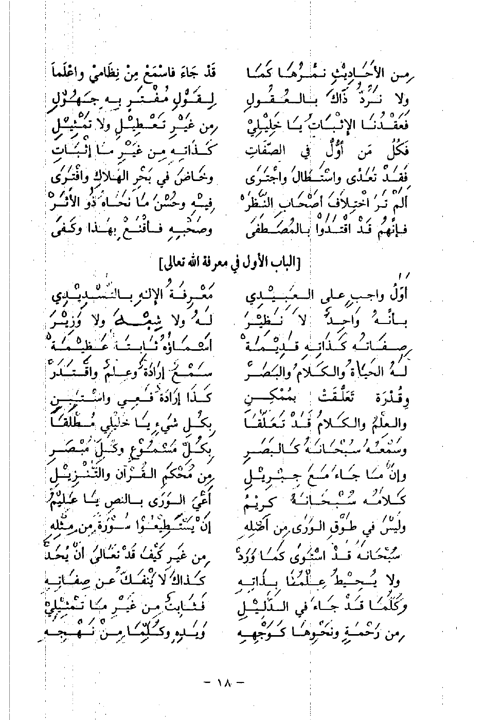 أَوَّلُ واجبٍ عَلَى العَبِيدِي ... مَعْرِفَةُ الإِلهِ بالتّسْدِيدِي