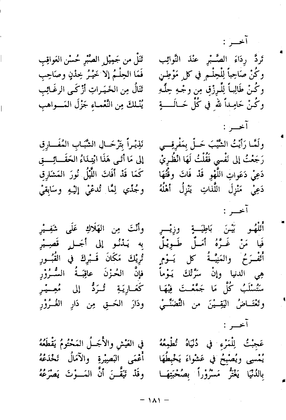 فَيا مَنْ غَرَّهُ أمَلٌ طَوِيلٌ ... بِه يَدْنُوا إلى أجَلٍ قَصِيرِ