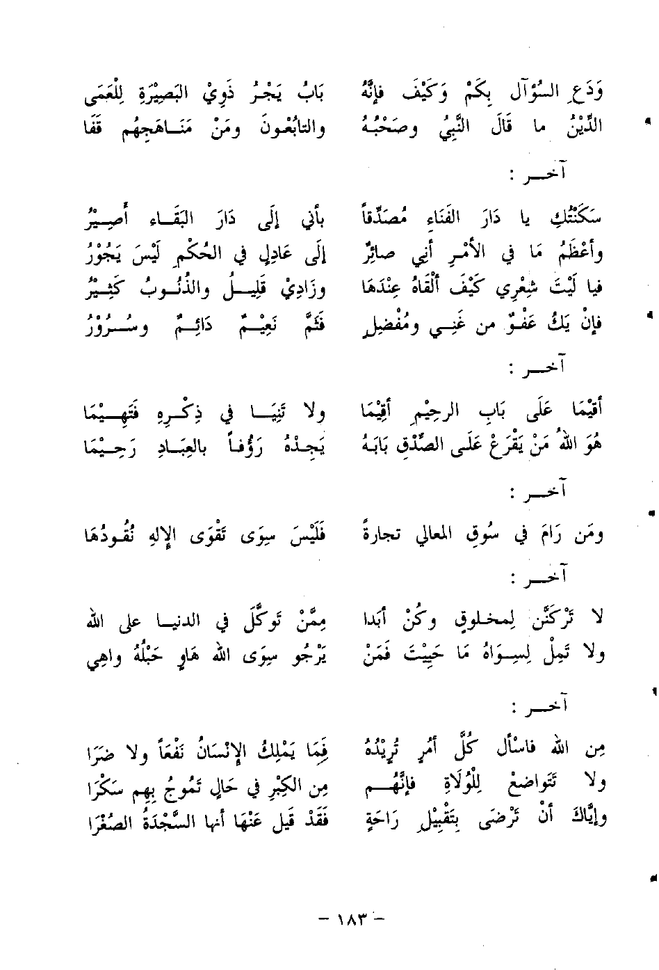 سَكَنْتُكِ يا دَارَ الفَنَاءِ مُصَدِّقًا ... بأني إلَى دَارَ البَقَاءِ أَصِيرُ