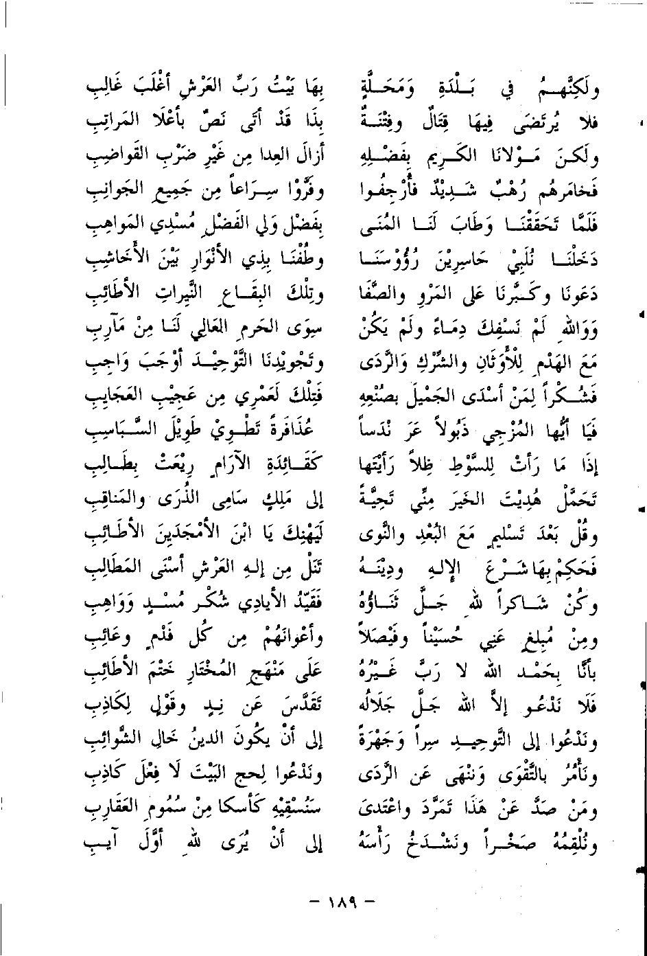 فلا يُرتَضَى فِيهَا قِتَالٌ وفِتْنَةٌ ... بِذَا قَدْ أتَى نَصٌ بأعْلَى المَراتِبِ