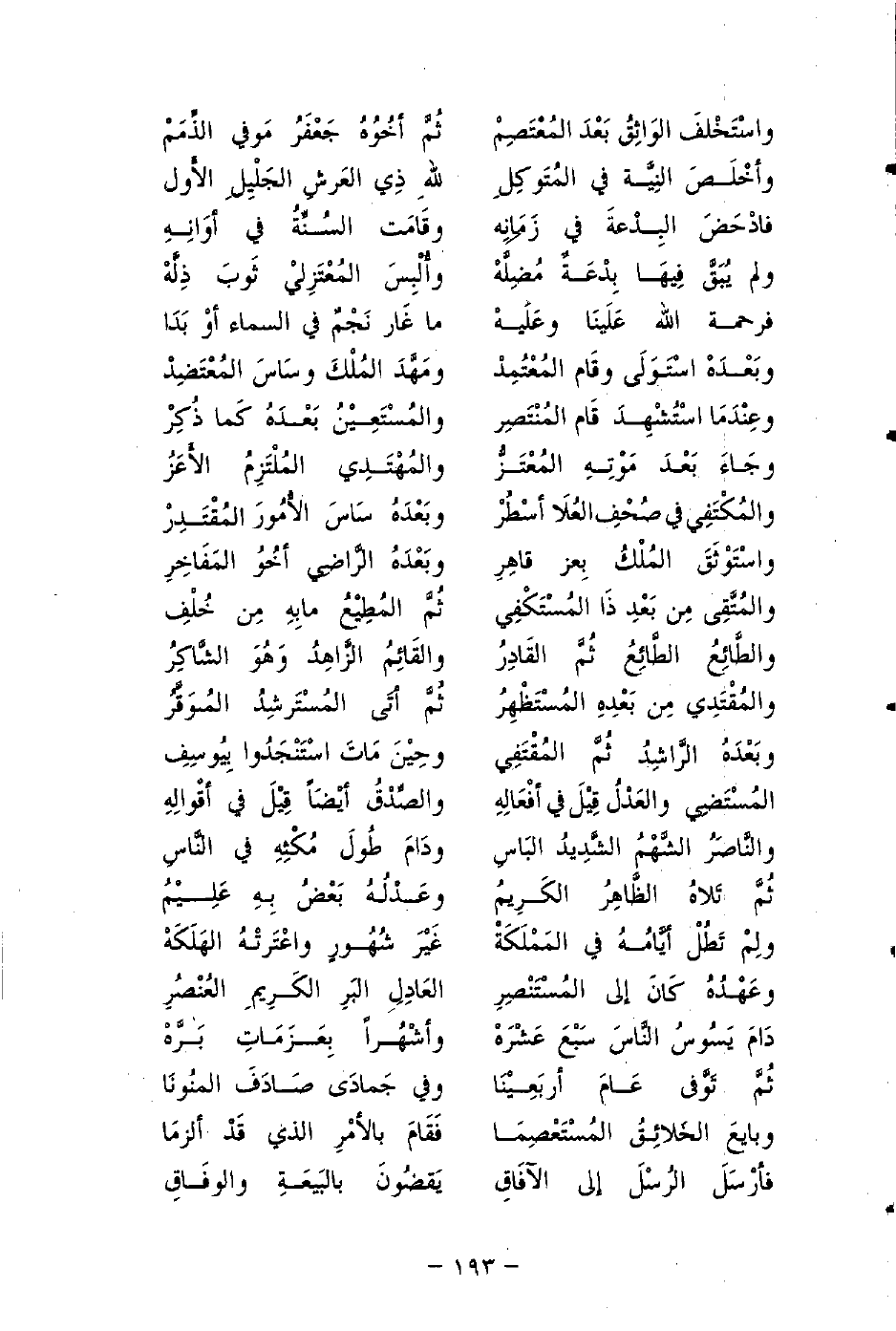 والطَّائِعُ الطَّائِعُ ثُمَّ القَادِرُ ... والقَائِمُ الزَّاهِدُ وَهُوَ الشَّاكِرُ