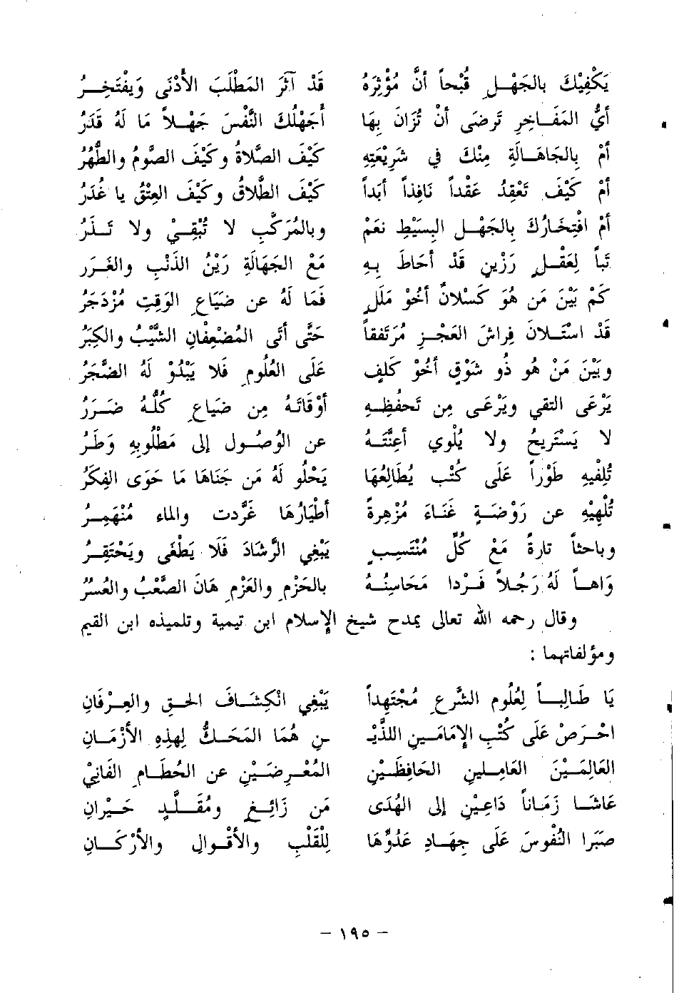 وقال رحمه الله تعالى يمدح شيخ الإسلام ابن تيمية وتلميذه ابن القيم ومؤلفاتهما: