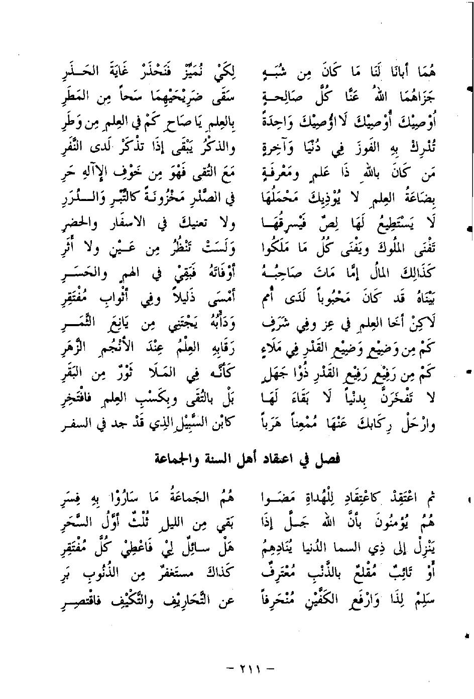 أوصِيكَ أُوصِيكَ لاَ أوُصِيكَ وَاحِدَةً ... بِالعِلمِ يَا صَاحِ كَمْ في العِلمِ مِن وَطَرِ