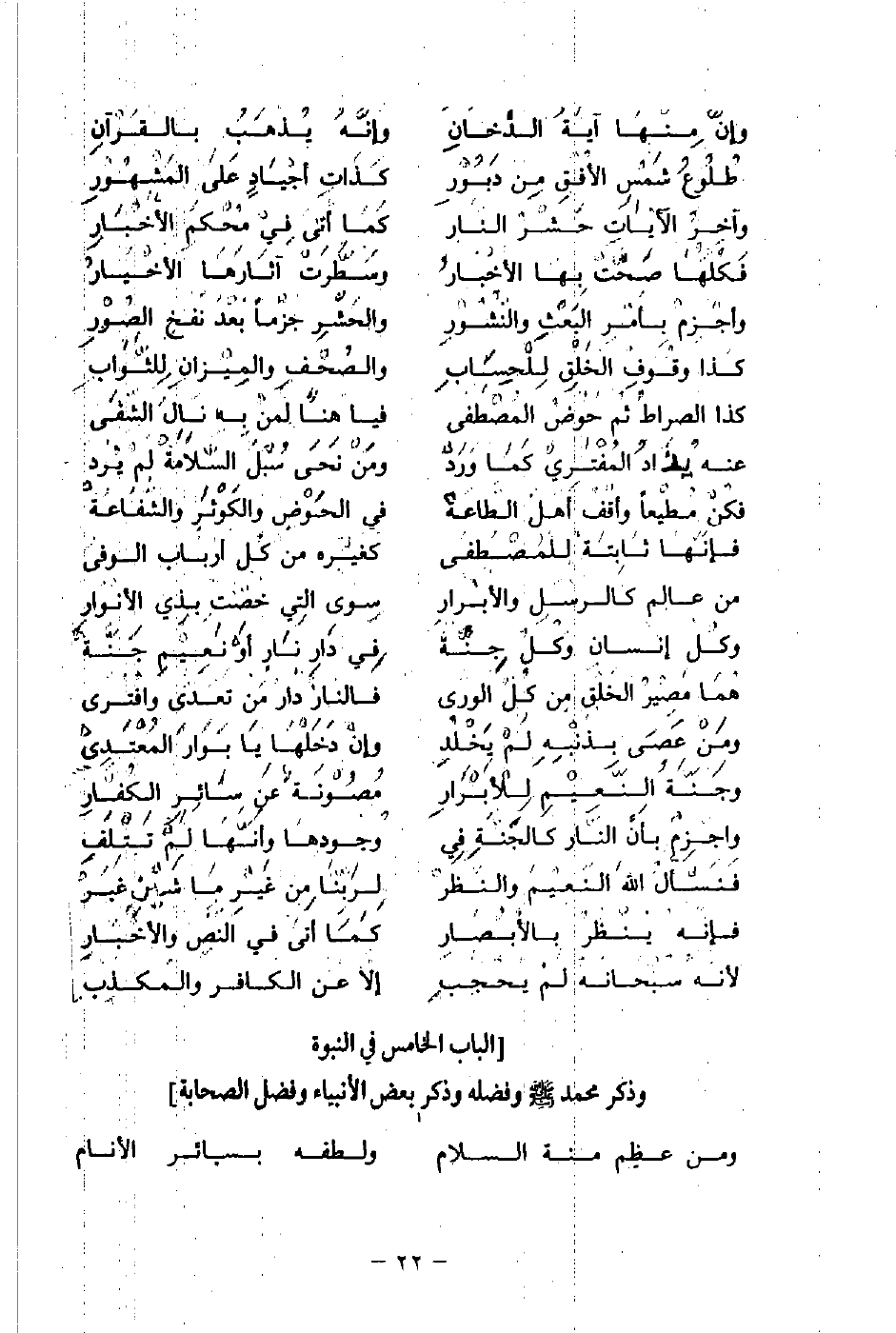 واجِزِم بأنَّ النَّارَ كالجَنَّةِ فِي ... وجودِهَا وأنَّهَا لَم تَتْلَفِ