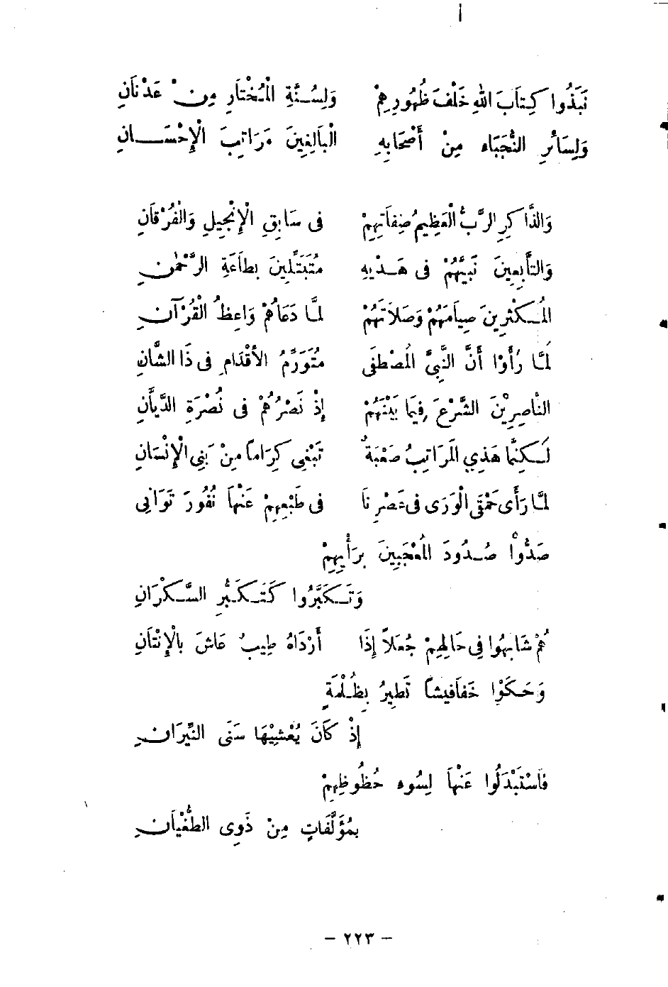 وَالذَّاكِرِ الرَّبَّ الْعَظِيمَ صِفَاتُهِمْ ... في سَابِقِ الإِنْجِيلِ وَالْفُرْقَانِ