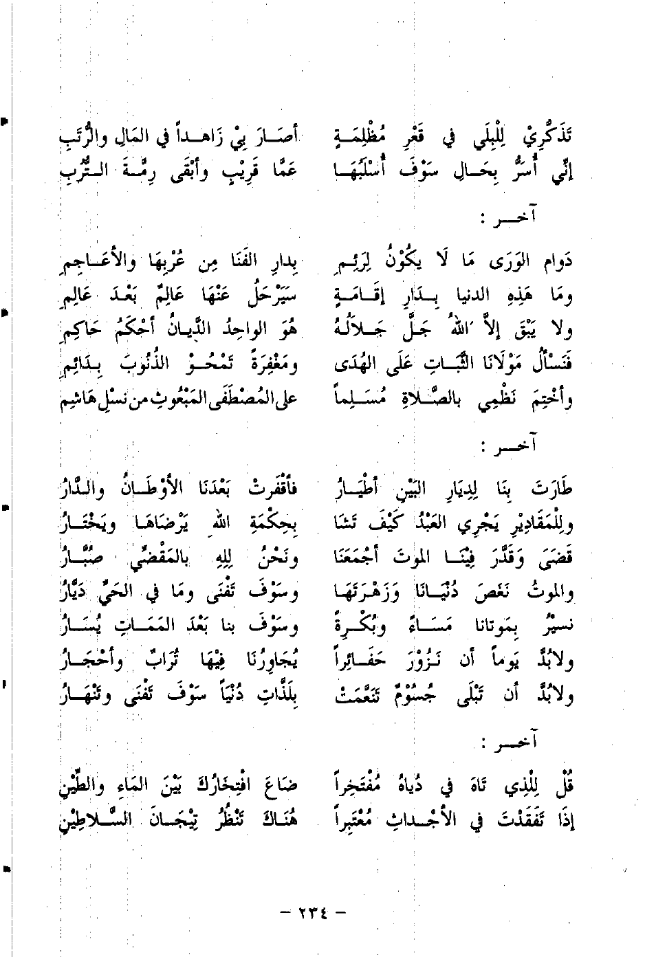 فَنَسْألُ مَوْلاَنَا الثَّبَاتَ عَلَى الهُدَى ... ومَغْفِرَةً تَمْحُوْ الذُنُوبَ بِدَائِمِ