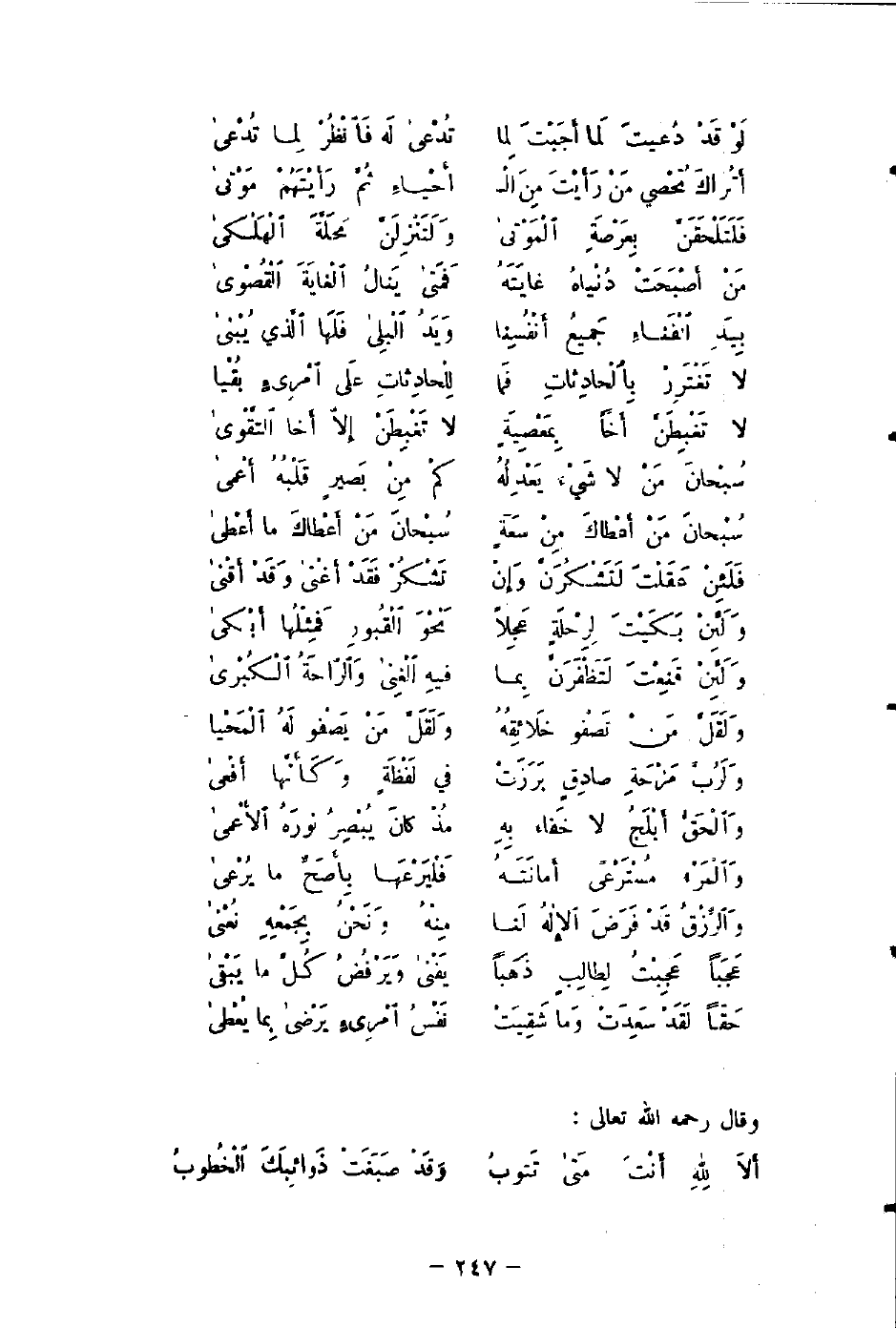 سُبْحانَ مَنْ لا شَيْء يَعْدِلُهُ ... كمْ مِنْ بَصيرٍ قَلْبُهُ أعْمى