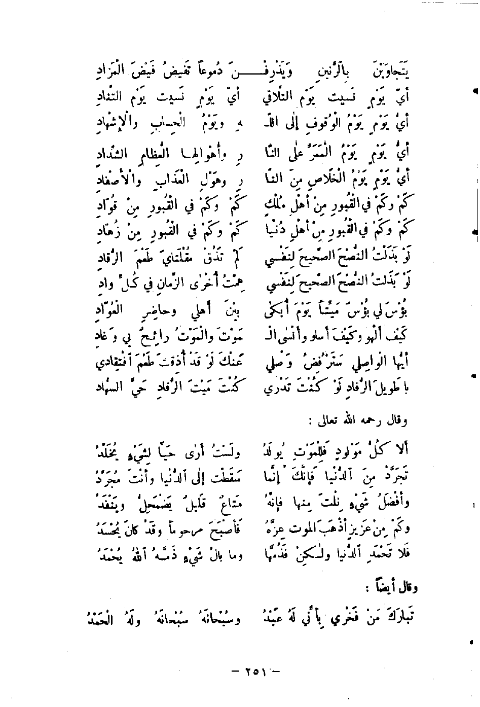 كَمْ وكَمْ في الْقُبورِ مِنْ أهْلِ مُلْكٍ ... كَمْ وكَمْ في الْقُبورِ مِنْ قُوّادِ ...