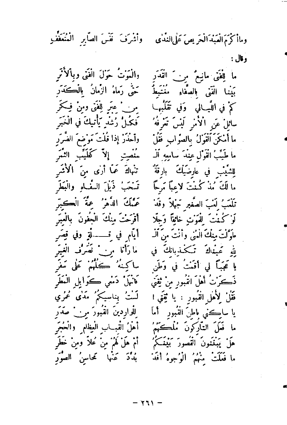 يا ساكِني باطِنَ الْقُبورِ أَمَا ... لِلْوارِدينَ الْقُبورَ مِنْ صَدَرِ