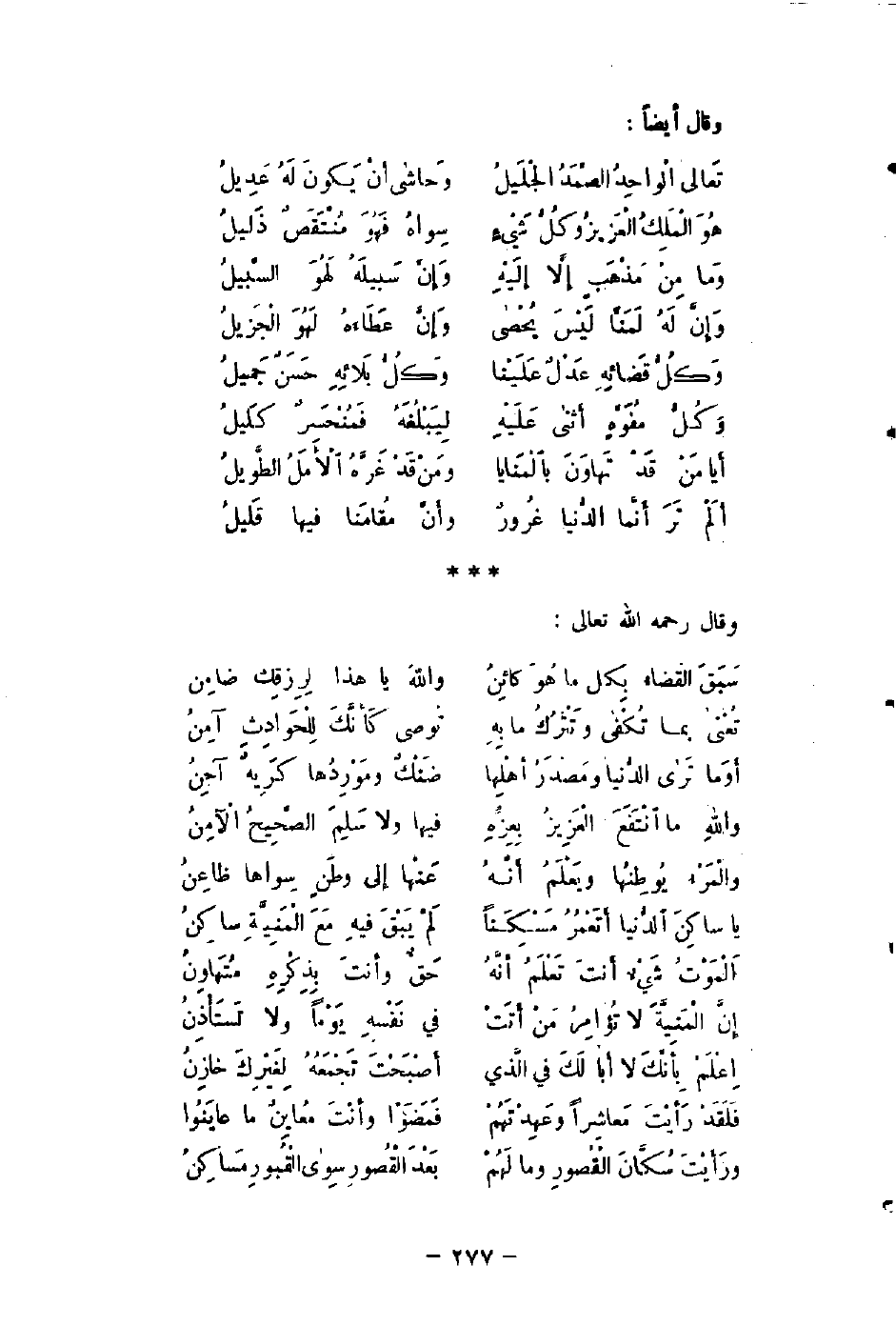 تَعالى الْواحِدُ الصَّمَدُ الْجَليلُ ... وَحاشا أنْ يَكونَ لَهُ عَدِيلُ
