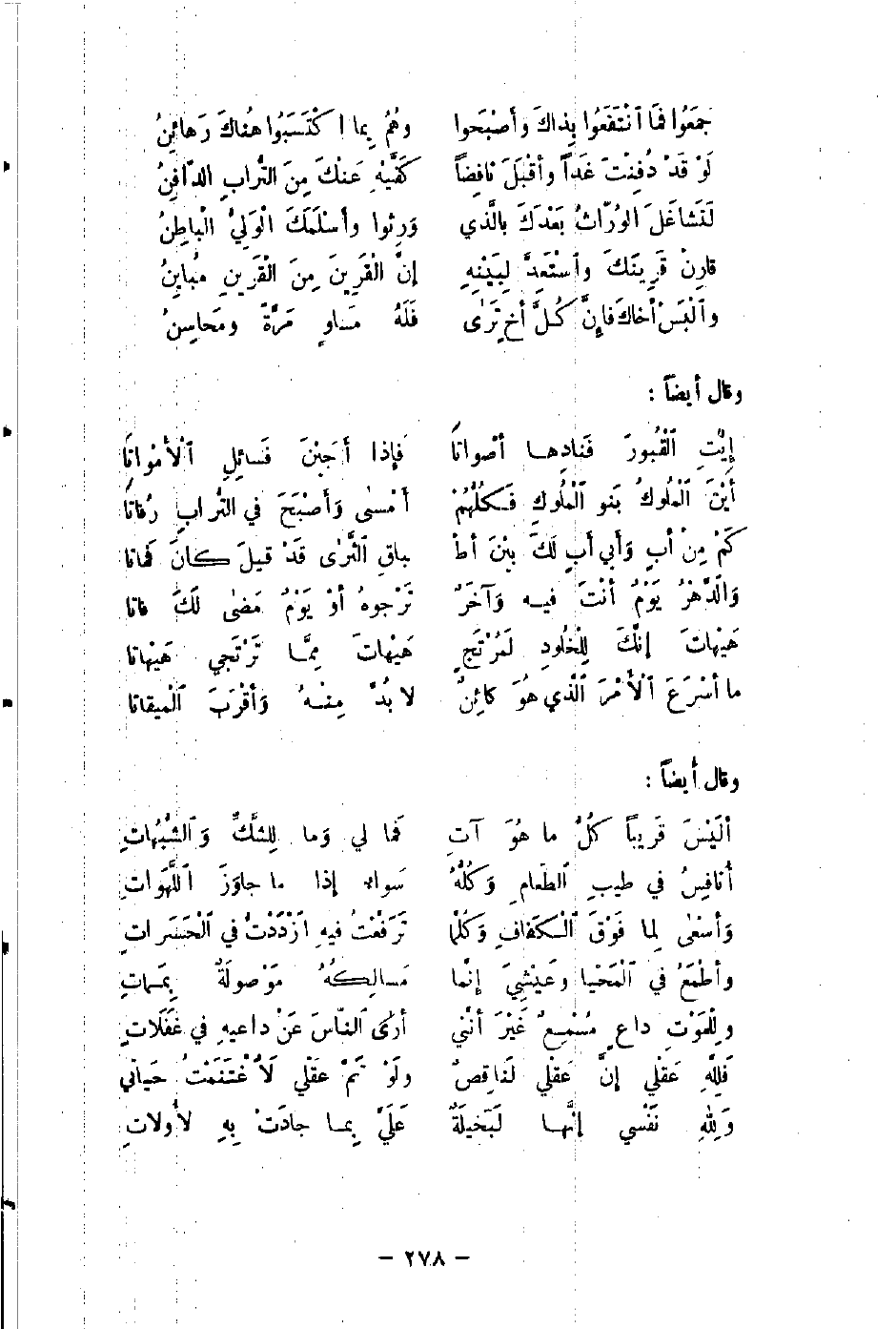 ايتِ الْقُبورَ فَنادِها أصْواتَا ... فَإِذا أَجَبْنَ فَسائِلِ الأَمْواتَا