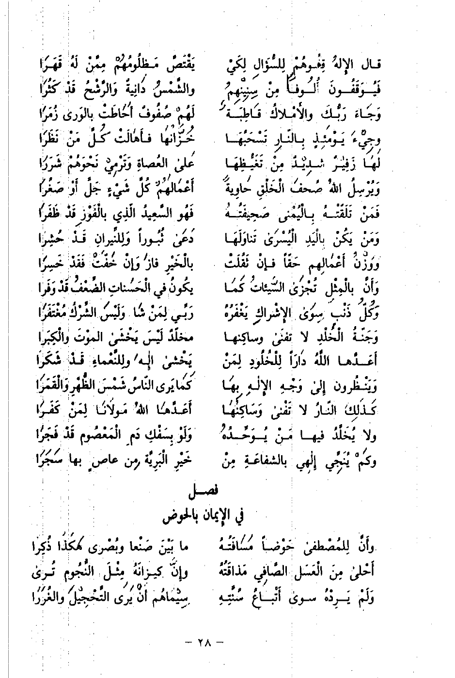 وَيُرْسِلُ اللهُ صُحفَ الْخَلْقِ حَاوِيةً ... أَعْمَالَهُمْ كُلَّ شَيءٍ جَلَّ أَو صَغُرَا