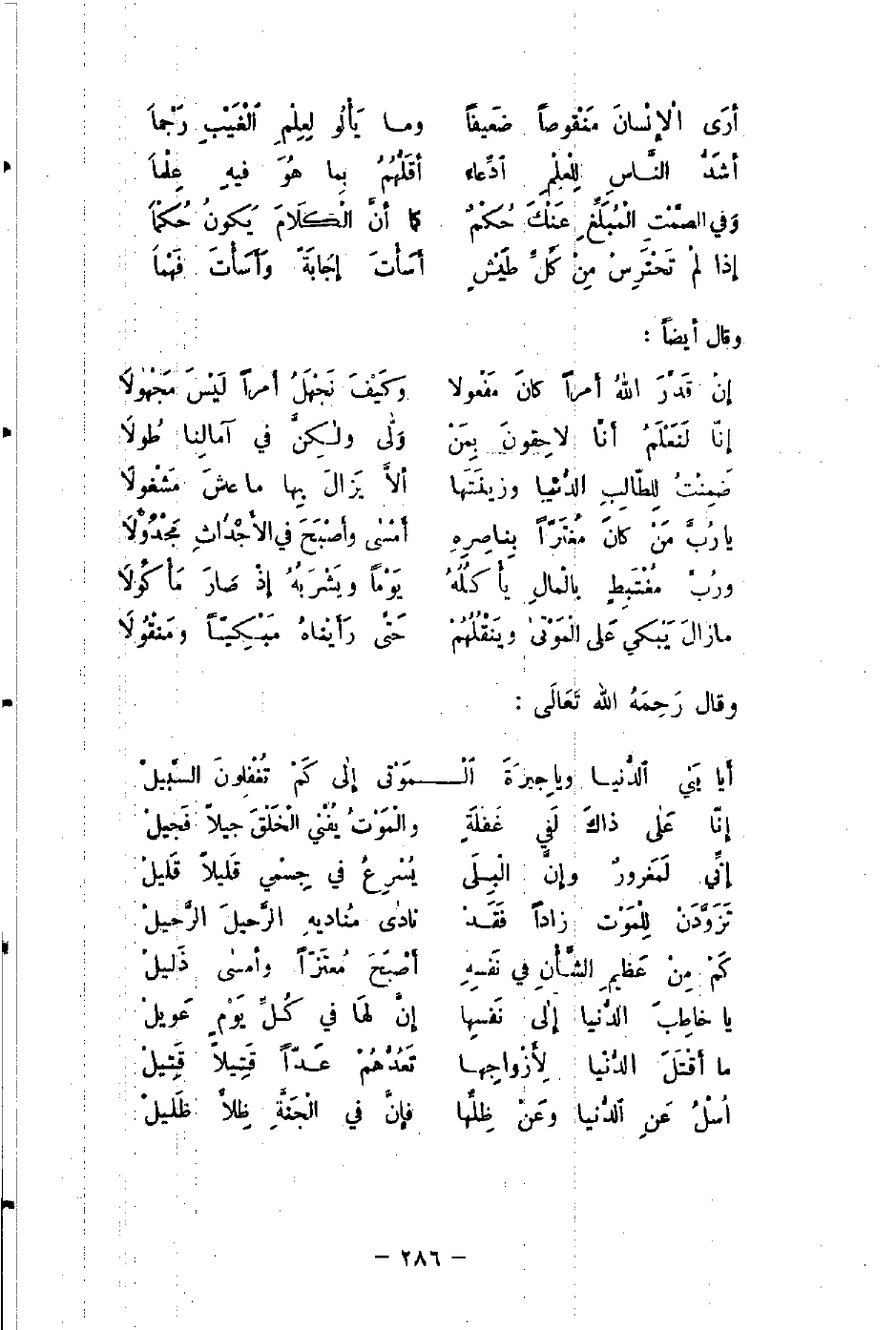 أرَى الإِنْسانَ مَنْقوصًا ضَعيفًا ... وما يَأْلُو لِعِلْمِ الْغَيْبِ رَجْما