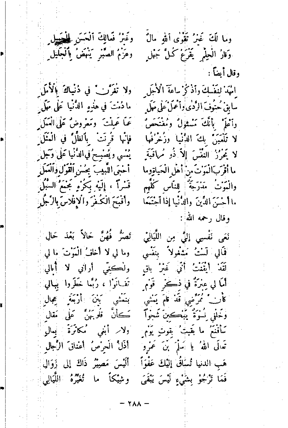 ما أقْرَبَ الْمَوْتَ مِنْ أهْلِ الْحَياةِ وما ... أحْجَى اللَّبيبَ بِحُسْنِ الْقَوْلِ والْعَمَلِ