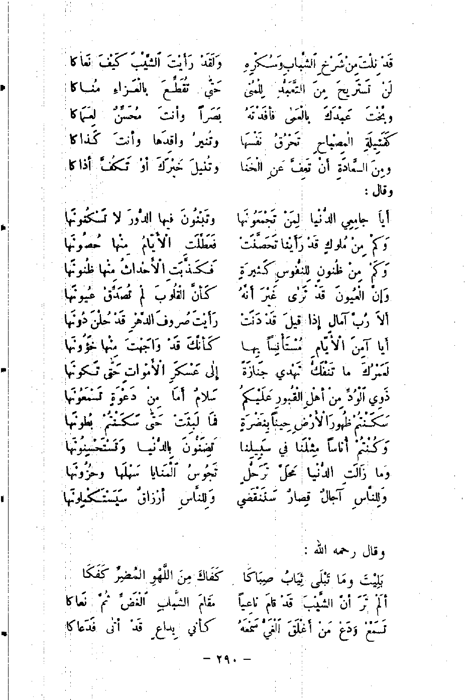 ألَمْ تَرَ أَنَّ الشَّيْبَ قَدْ قامَ ناعِيًا ... مَقامَ الشَّبابِ الْغَضِّ ثُم نَعاكا