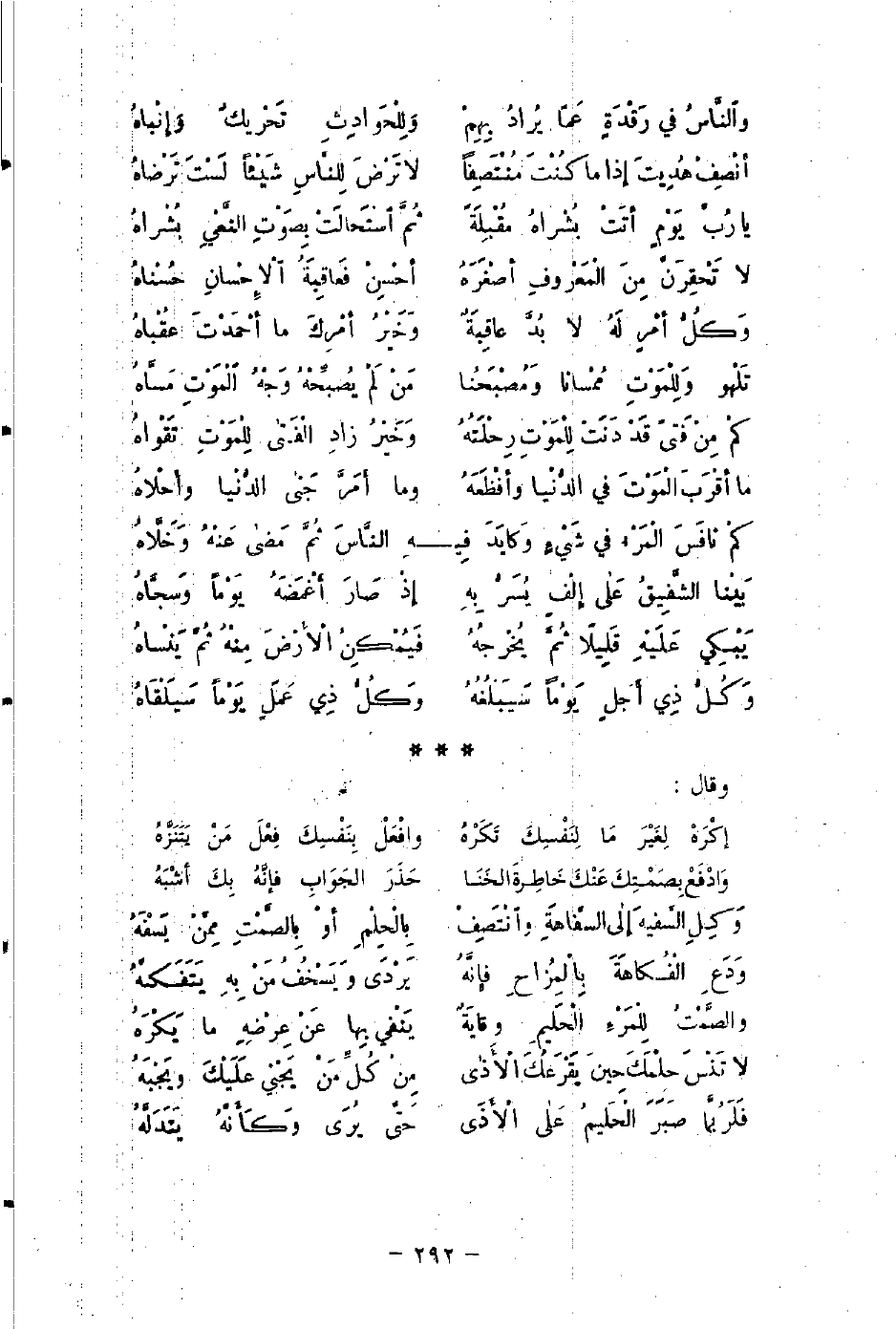 كمْ نافَسَ الْمَرْءُ في شَيْءٍ وَكايَدَ فِيـ ... ـهِ النَّاسَ ثُمَّ مَضى عَنْهُ وَخَلاَّهُ