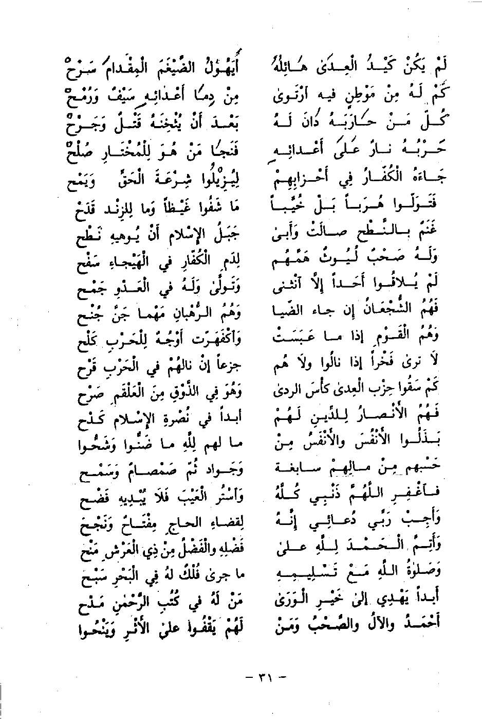 وَصَلاةُ اللهِ مَعْ تَسْلِيمِهِ ... مَا جَرى فُلْكٌ لهُ فِي الْبَحْرِ سَبْحُ