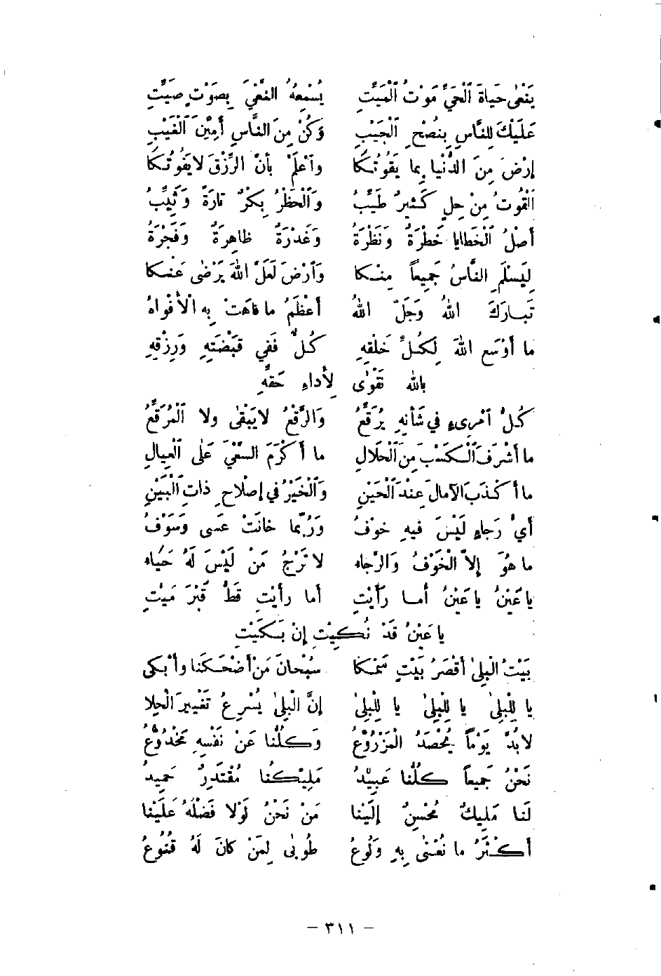 ما أَكْذَبَ الآمالَ عِنْدَ الْحَيْنِ ... وَالْخَيْرُ في إصْلاحِ ذاتِ الْبَيْنِ