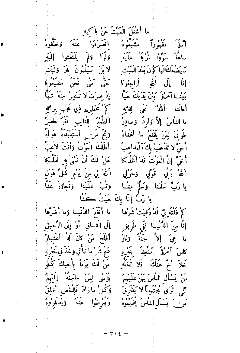 ساعَةَ سَوَّوْا تُرْبَهُ عَلَيْهِ ... وَلَّوْا وَلمْ يَلْتَفِتوا إلَيْهِ