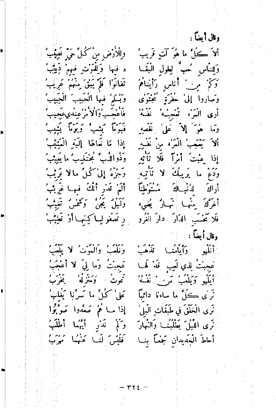 وَكَمْ مِنْ أُناسٍ رَأَيْناهُمُ ... تَفانَوْا فَلَمْ يَبْقَ مِنْهُمْ عَرِيبُ