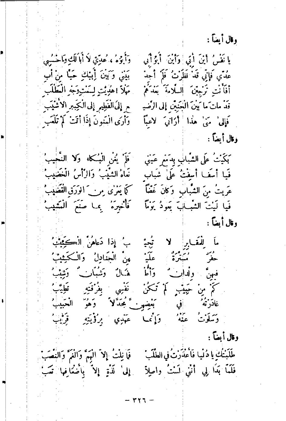 قَدْ ماتَ مَا بَيْنَ الْجَنِيْنِ إلى الرَّضيـ ... ـعِ إِلى الْفَطِيمِ إِلى الْكَبِيرِ الأَشْيَبِ ...