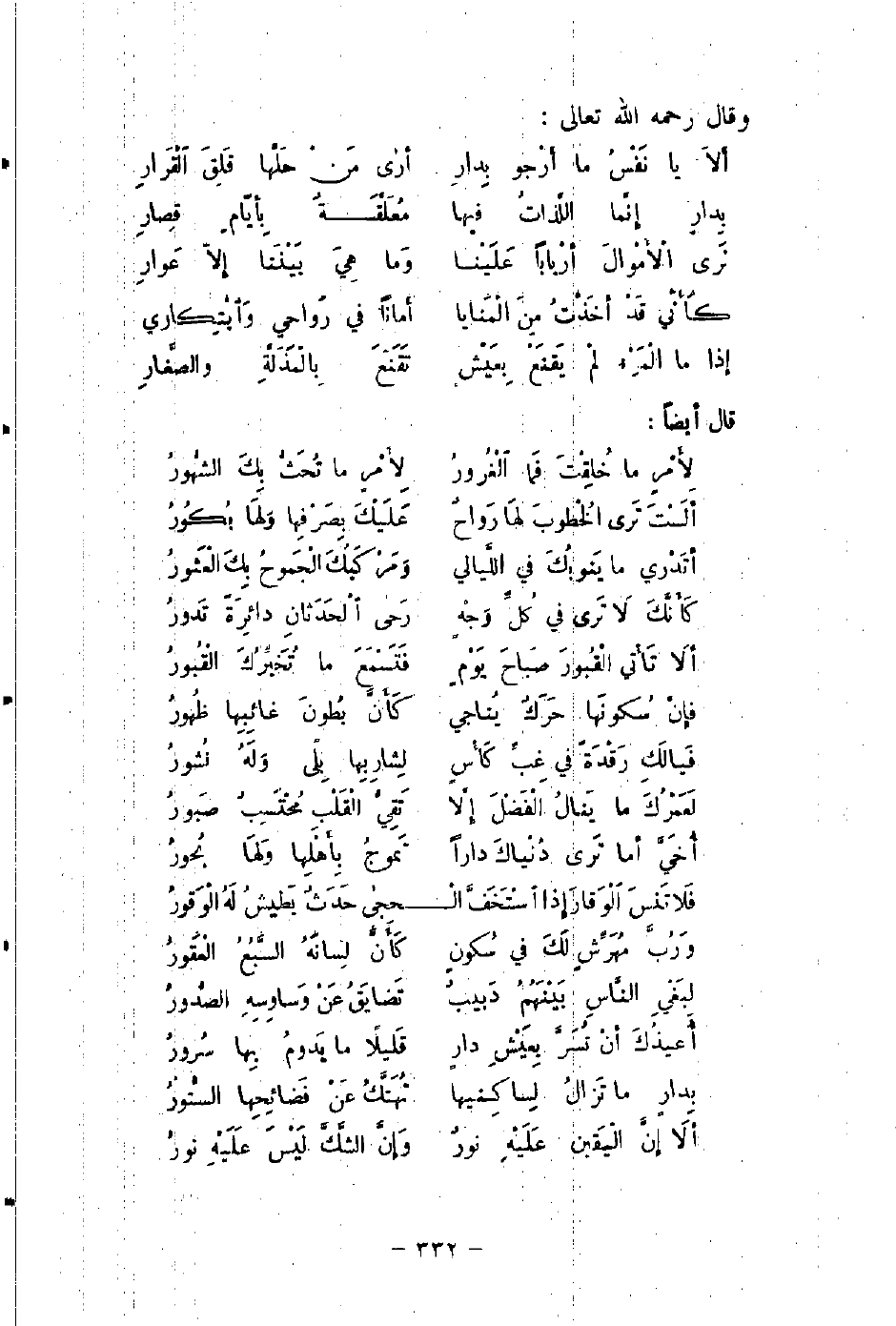 أَلاَ يا نَفْسُ ما أَرْجو بِدارِ ... أرى مَنْ حَلَّها قَلقَ الْقَرارِ