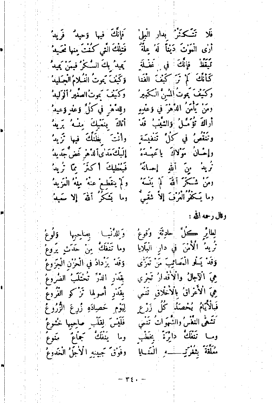 فَلا تَتَكَثَّرْ بِدار الْبِلَى ... فَإِنَّكَ فيها وَحيدٌ فَريدُ