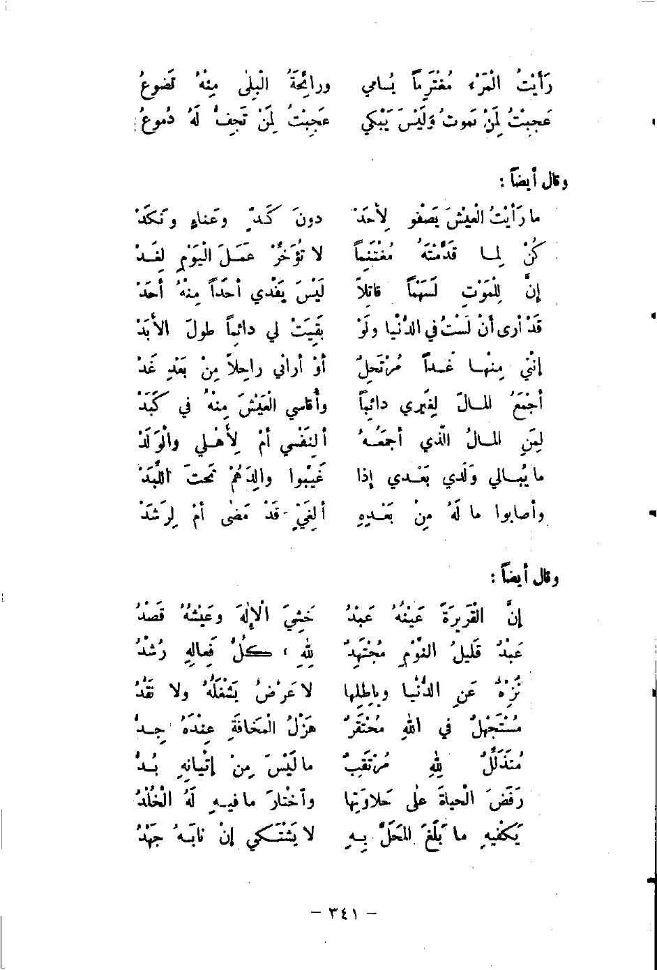 عَجِبْتُ لِمَنْ يَموتُ وَلَيْسَ يَبْكي ... عَجِبْتُ لِمَنْ تَجِفُّ لَهُ دُموعُ