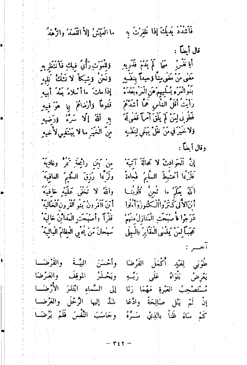 فَاشْدُدْ يَديْكَ إذا ظِفِرْتَ بِه ... ما الْعَيْشُ إلاَّ الْقَصْدُ والزُّهْدُ