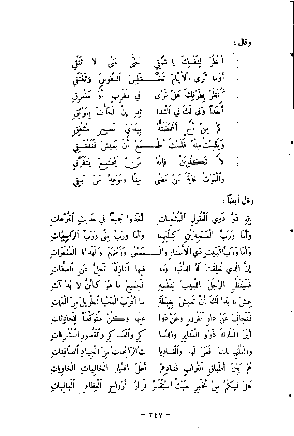 هَلْ فيكُمُ مِنْ مُخْبِرٍ حَيْثُ اسْتَقَرَّ ... قَرارُ أَرْواحِ الْعِظامِ الْبالِياتِ