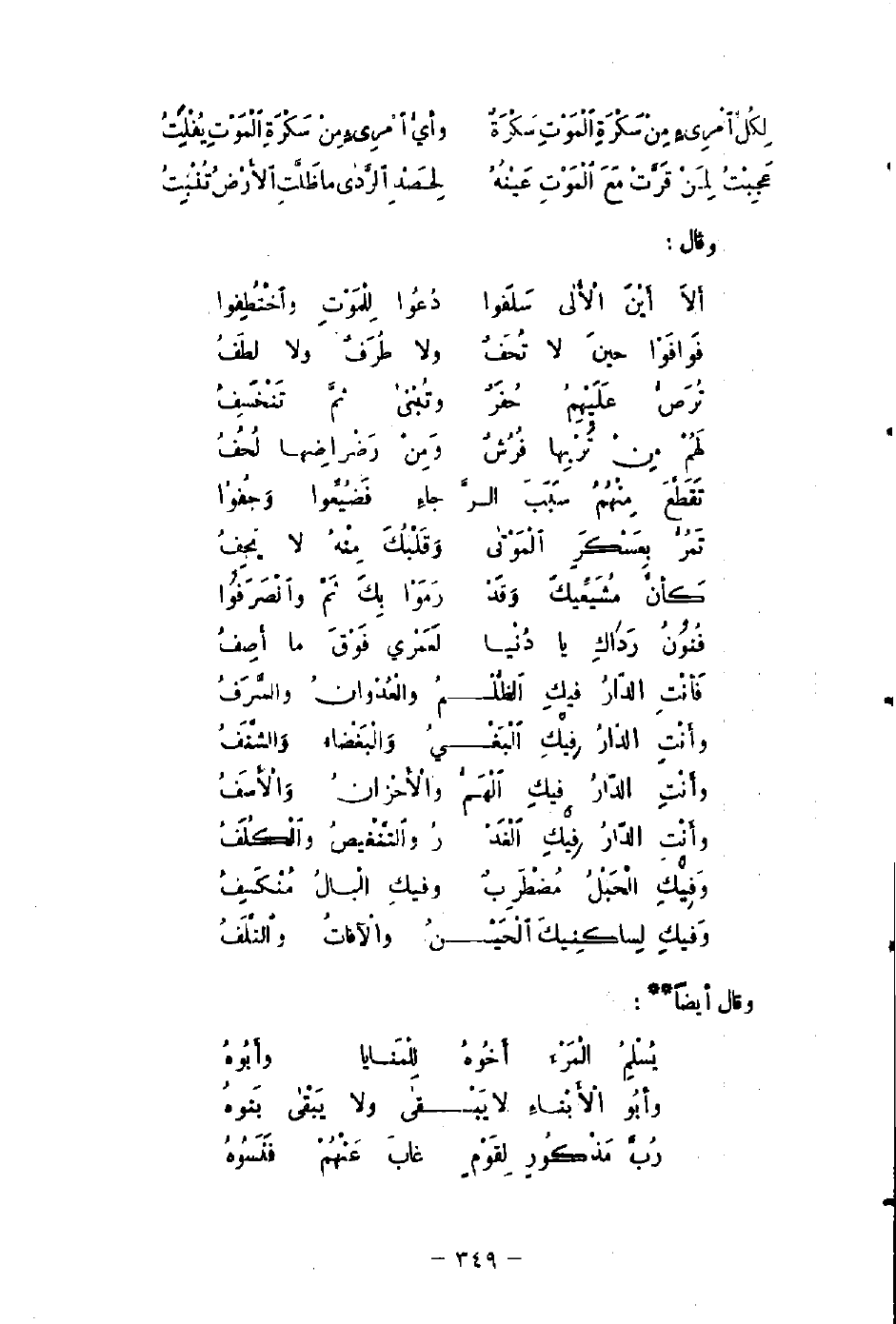 أَلاَ أيْنَ الأُلى سَلَفوا ... دُعُوا لِلْمَوْتِ واخْتُطِفوا