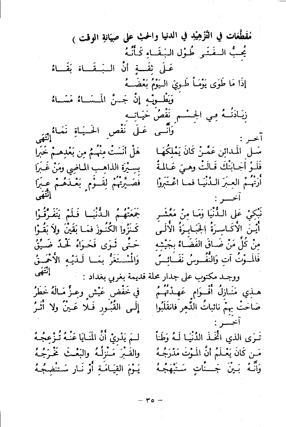 مَقَطَّعَات في التَّزْهِيدِ في الدنيا والحثِ عَلَى صِيَانةِ الوقت