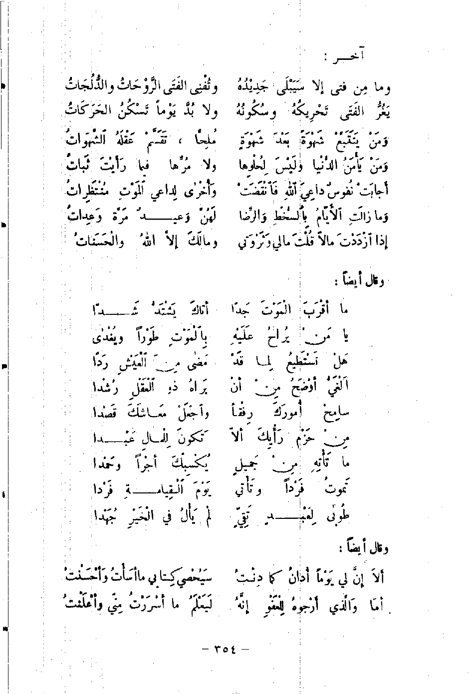 أَلاَ إِنَّ لي يَومًا أُدانُ كما دِنْتُ ... سَيُحْصي كِتابي ما أسَأْتُ وَأحْسَنْتُ