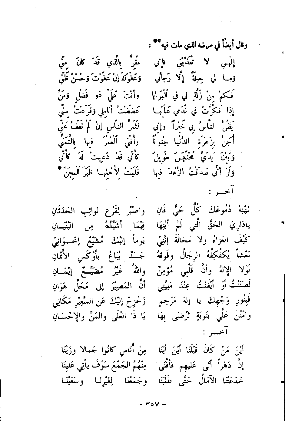 إِلَهي لا تُعَذِّبني فَإِنّي ... مُقِرٌّ بِالَّذي قَد كانَ مِنّي