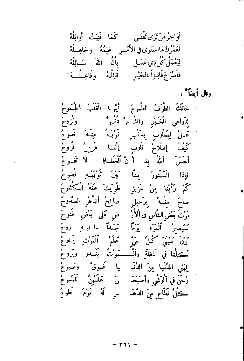 أوَاخِرُ مَنْ تَرَى تَفْنَى ... كَمَا فَنِيَتْ أوائِلُهْ
