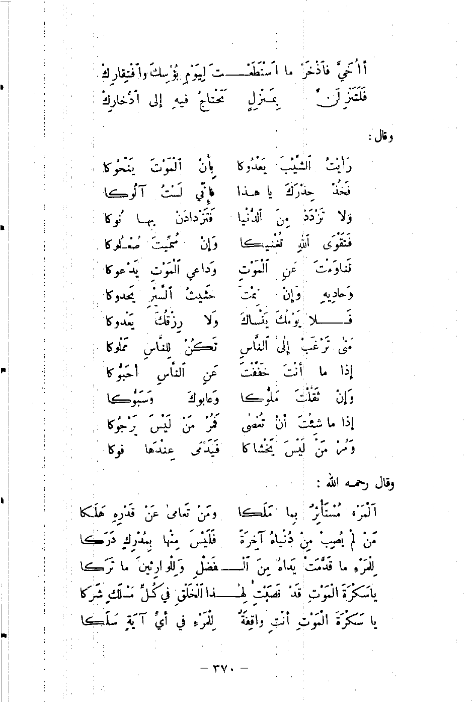 يا سكرةَ الْمَوتِ قَدْ نَصَبْتِ لهِـ ... ـذا الْخَلْقِ في كُلِّ مُسْلَكٍ شَرَكا