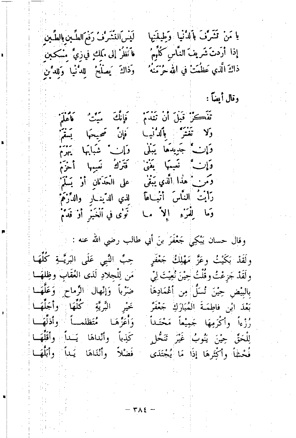 يا مَنْ تَشَرَّفَ بالدُّنْيا وَطِينَتهِا ... لَيسَ التَّشَرُّفُ رَفْعَ الطِّينِ بالطِّينِ