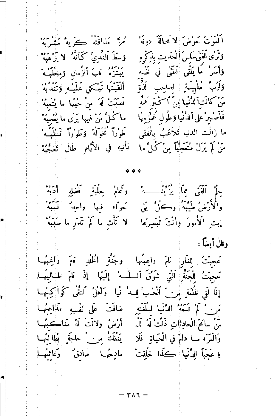 عَجِبْتُ لِلنّارِ نامَ راهِبُها ... وجَنَّةِ الخُلْدِ نامَ راغِبُها