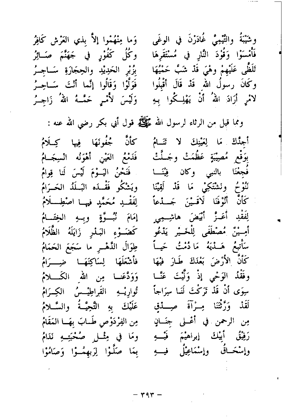 ومما قيل من الرثاء لرسول الله - صلى الله عليه وسلم - قول أبي بكر - رضي الله عنه -: