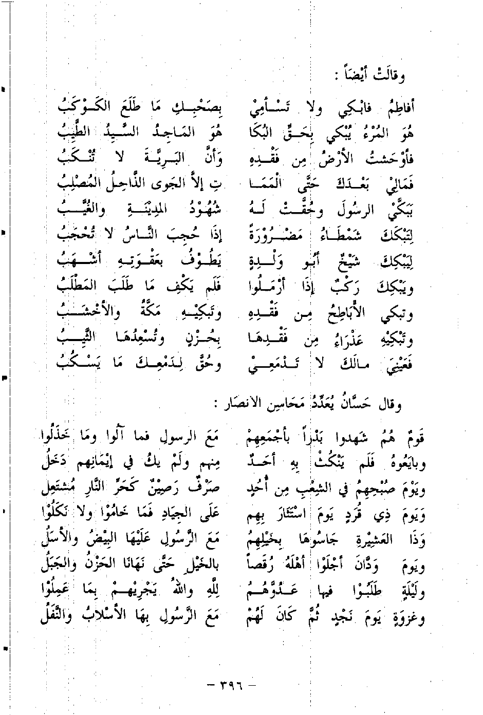 أفاطِمُ فابْكِي ولا تَسْأمِي ... بَصَحْبِكِ مَا طَلَعَ الكَوكَبُ